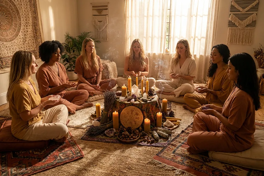 Jeder Circle öffnet einen Raum der Gemeinschaft, des Innehaltens und der Heilung. Wir meditieren, atmen, teilen, räuchern, lauschen und feiern, im Einklang mit Erde, Mond und Elementen.